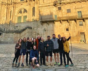 That is David in the middle, after completing his second Camino in 2022! Read more about him in Meet the Team
